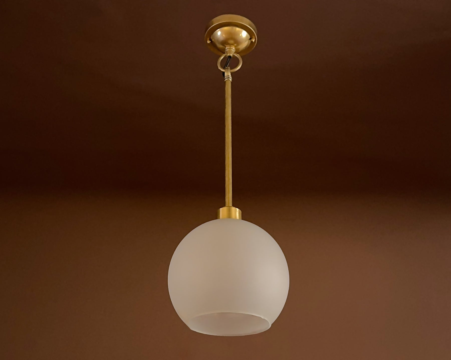 I designed our Aura Series of lighting shortly after moving into a new studio space. It was this big, cold industrial space, and I wanted something to make it feel more human. The soft etched glass and brass glow remind me of old gas lanterns, warm and imperfect in the best way.