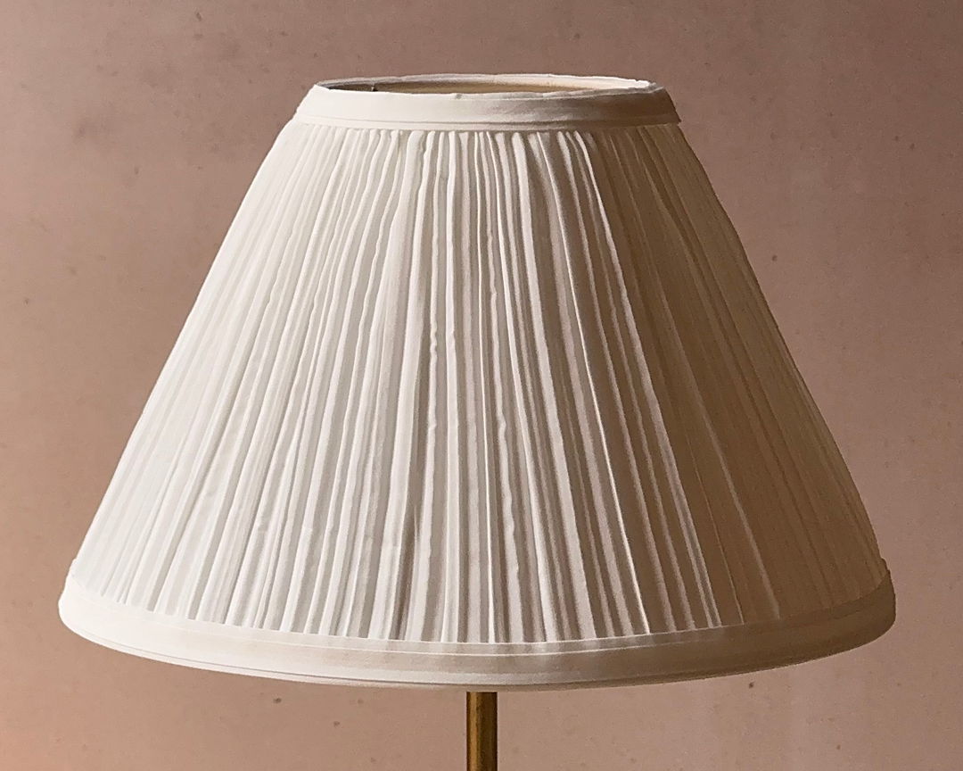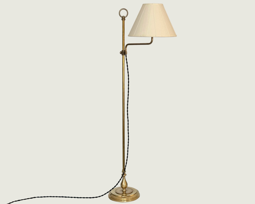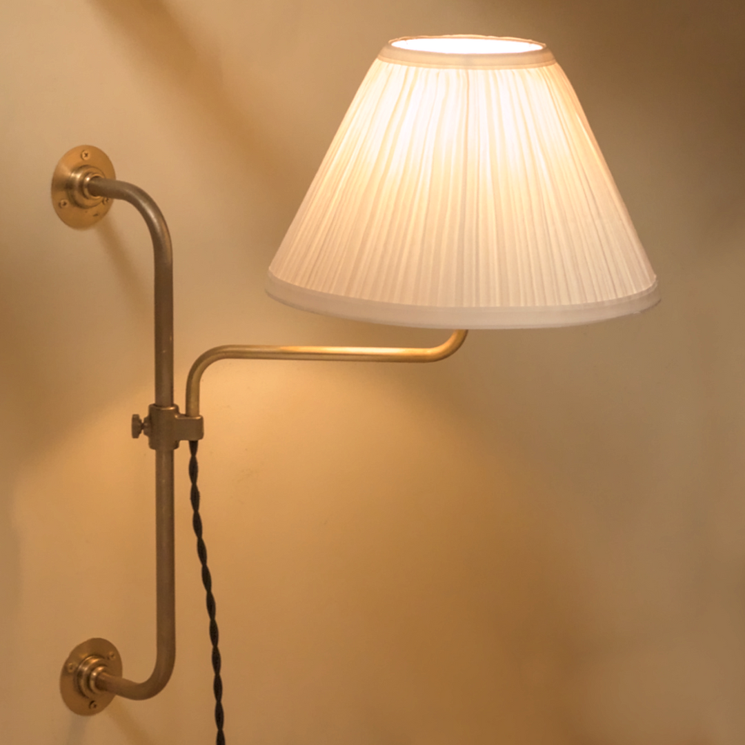 Our popular Cottage Plug-in Wall Sconce has received a facelift. We've utilized a heavier gauge of brass for more heft, and we've adapted the design to accept any of our lampshades. Additionally, we've added a table lamp and a floor lamp in the same design vocabulary.